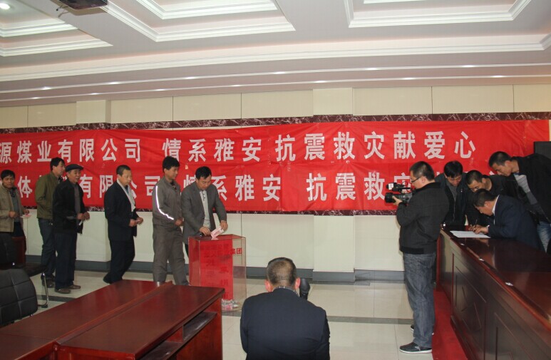 雅安廬山抗震救災(zāi)員工自主捐款場景