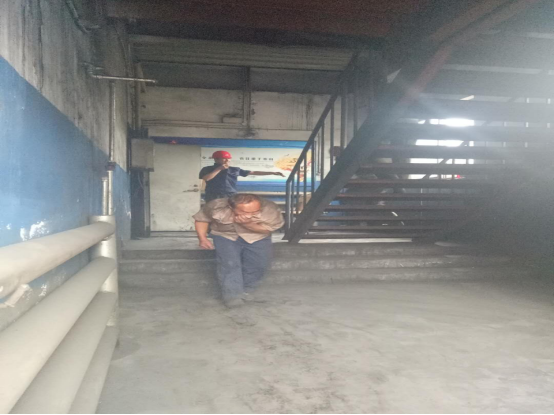 救護組清理檢查是否火災(zāi)現(xiàn)場有未撤離的工人,同時將清理情況向總指揮匯報