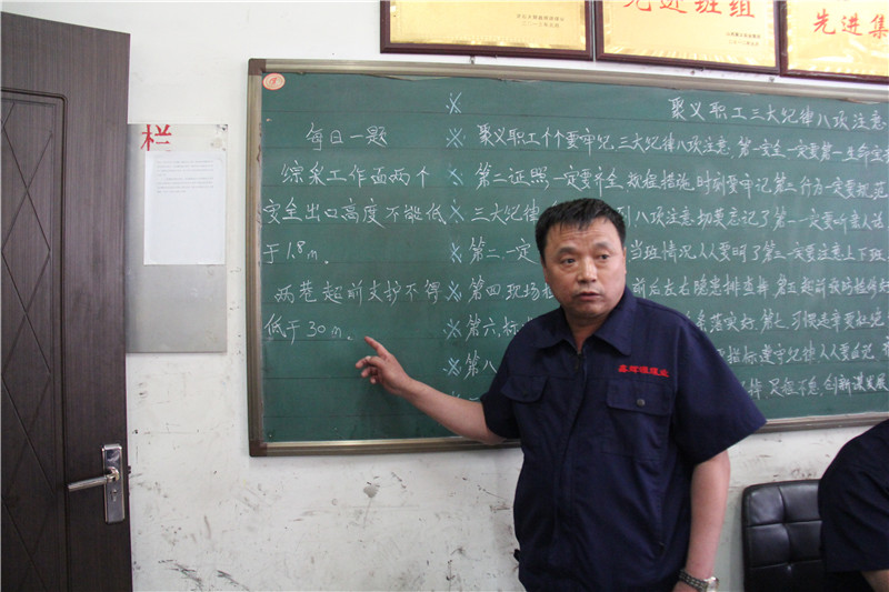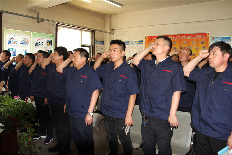 安全副總陳輝講到,班前會是班組宣貫上級文件、規(guī)章制度、領(lǐng)導(dǎo)指示、會議精神,組織職工安全教育培訓(xùn),布置當(dāng)班安全生產(chǎn)工作任務(wù)的一個多功能會議,也是科學(xué)謀劃、統(tǒng)籌安排、合理組織、擬定完成作業(yè)計劃任務(wù)和各項指標(biāo)、保障安全生產(chǎn)的一個重要會議,開好班前會對安全生產(chǎn)的意義重大。陳總介紹,班前會分為八個流程:一、會議點名,職工進(jìn)入會議室,到召開班前會時間后,班(隊)長開始點名,并進(jìn)行班前安全確認(rèn);二、合唱會歌,共同歌唱“聚義職工三大紀(jì)律八項注意”;三、班前培訓(xùn),班(隊)長組織學(xué)習(xí)“每日一題”,學(xué)習(xí)內(nèi)容應(yīng)相對簡單,為本專業(yè)、崗位員工應(yīng)知應(yīng)會的內(nèi)容。對上一班“每日一題”所學(xué)內(nèi)容,進(jìn)行現(xiàn)場隨機(jī)抽人提問,回答不完整或錯誤時,再隨機(jī)抽人補充、指正。貫徹、學(xué)習(xí)規(guī)程、措施,上級部門、公司、廠(礦)有關(guān)文件、會議精神等;四、班組長點評,由班(隊)長對前一日當(dāng)班的安全生產(chǎn)情況進(jìn)行總結(jié)點評,重點對工作表現(xiàn)好的職工給予表揚或獎勵,表現(xiàn)差的給予提醒、批評或處罰;五、講任務(wù),由班(隊)長布置當(dāng)班生產(chǎn)任務(wù),具體分工責(zé)任到人,定人員,定任務(wù);六、講安全,班(隊)長根據(jù)當(dāng)班具體工作安排,有針對性地強(qiáng)調(diào)安全注意事項、防范措施,遵循“一原則、兩要點、三強(qiáng)調(diào)”;七、講質(zhì)量,根據(jù)當(dāng)班具體工作,班(隊)長強(qiáng)調(diào)相關(guān)施工技術(shù)參數(shù)及技術(shù)質(zhì)量要求;八、安全宣誓,班組長帶領(lǐng)全班職工舉起右拳進(jìn)行上崗前安全宣誓。