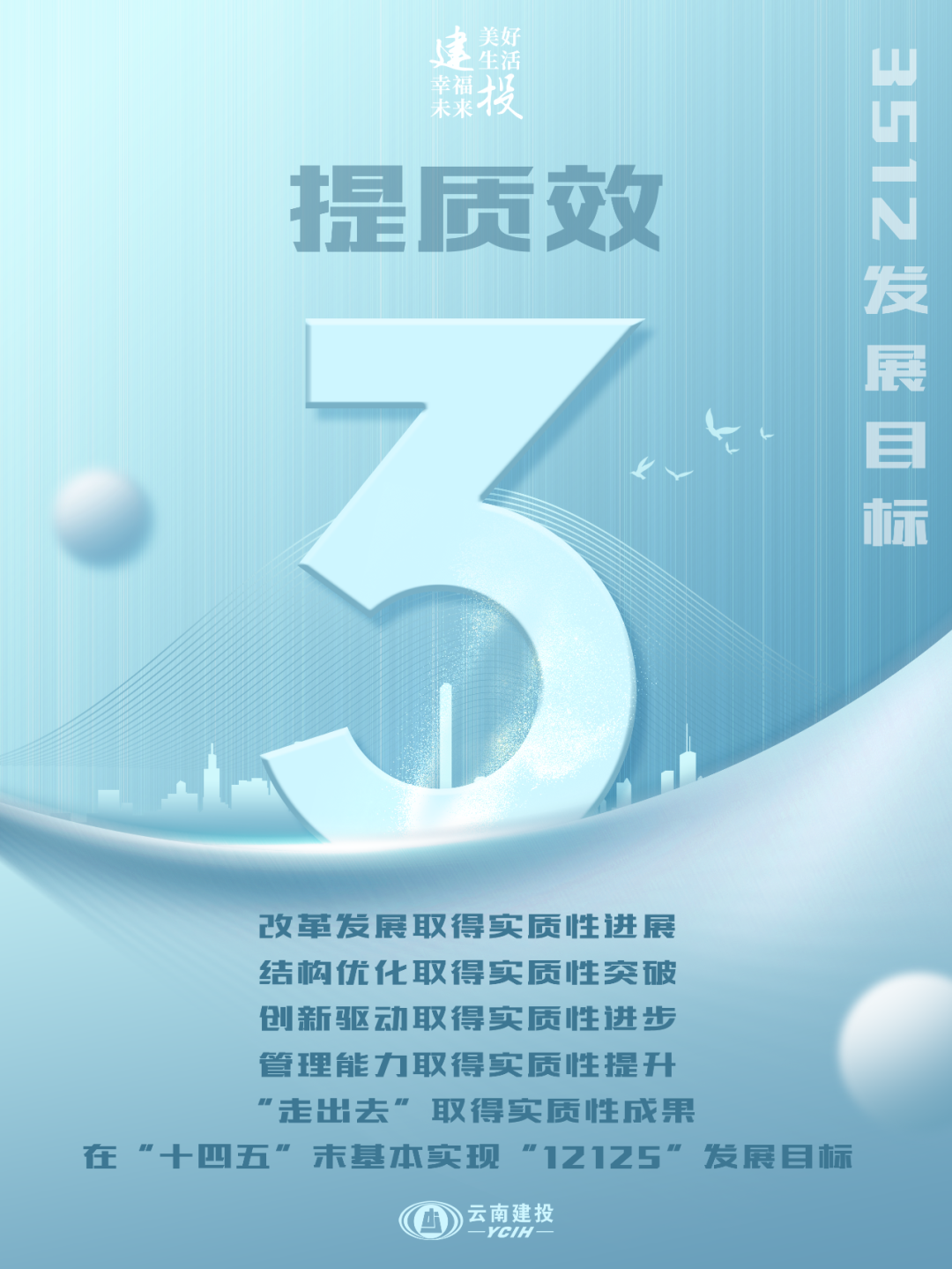 我們要實(shí)現(xiàn)2023年到2025年“三年提質(zhì)效”。貫徹“十四五”時(shí)期集團(tuán)“12345”發(fā)展戰(zhàn)略,堅(jiān)持穩(wěn)字當(dāng)頭、穩(wěn)中求進(jìn),適度調(diào)整發(fā)展速度,更加突出質(zhì)量效益,統(tǒng)籌保持規(guī)模要求,推進(jìn)集團(tuán)改革發(fā)展取得實(shí)質(zhì)性進(jìn)展、結(jié)構(gòu)優(yōu)化取得實(shí)質(zhì)性突破、創(chuàng)新驅(qū)動取得實(shí)質(zhì)性進(jìn)步、管理能力取得實(shí)質(zhì)性提升、“走出去”取得實(shí)質(zhì)性成果,經(jīng)過三年艱苦不懈努力,集團(tuán)在“十四五”末基本實(shí)現(xiàn)“12125”發(fā)展目標(biāo)。