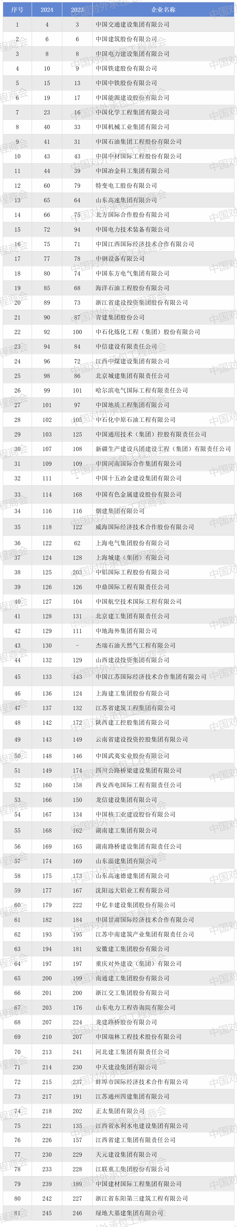 集團位列ENR全球最大國際承包商250強第143位 較2023年上升6位
